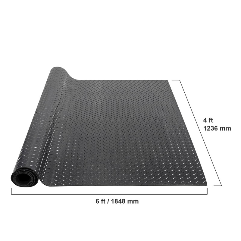 Happybuy Diamond-Plate Rubber Flooring Roll, 3 mm x 4 ft x 6 ft Garage Floor Mat, SBR Rubber Garage Flooring Roll, Easy to Clean, Diamond Plate Rubber Mat for Under Cars, Garage Industry Gym, Black