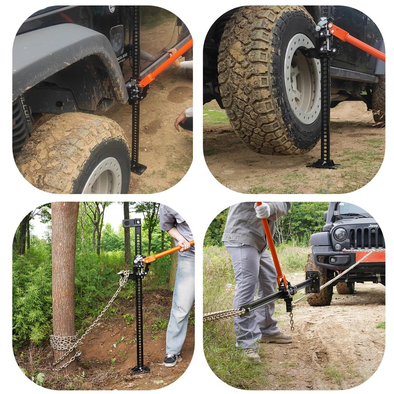 - Multi-Functional Utility The Happybuy farm jack is a multi-purpose tool. It helps with vehicle tire changes, tree pulling on the farm, boat lifting, off-road recovery, highway rescue, and can even be used as a winch for lateral stretching.