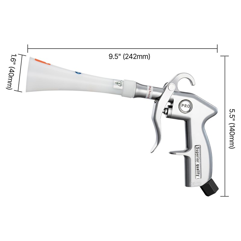 - High-Efficiency Performance Delivers powerful 6-9.2 bar (80-160 PSI) airflow through a 360° rotating rubber hose, effectively dislodging stubborn dirt and debris from all angles with minimal air consumption (100mL/min).