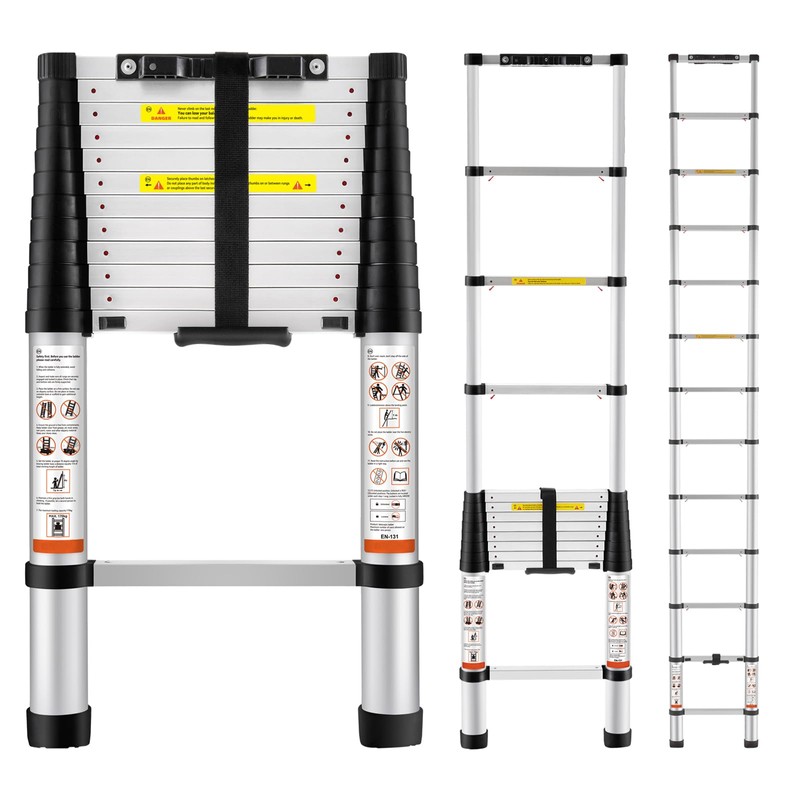 - Easy to Carry & Store This lightweight 12.5 ft ladder is designed for effortless portability. It fits easily in tight spaces, such as under sofas or in car trunks, making it more convenient than traditional bulky ladders.