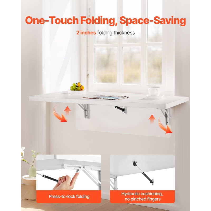 - One-touch Folding: Simply press a button to fold the wall mounted table, saving 2 inches of space when not in use. The hydraulic mechanism ensures smooth, secure closing, so no more pinched fingers—just pure convenience