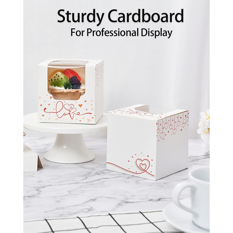 Happyhiram Heart Cupcake Boxes 25 Pcs, Individual Cupcake Box with insert and Window for Valentines Day Gift Boxes Cupcake Containers Single for Kids Valentine Gift Ornament Boxes for Party Favors