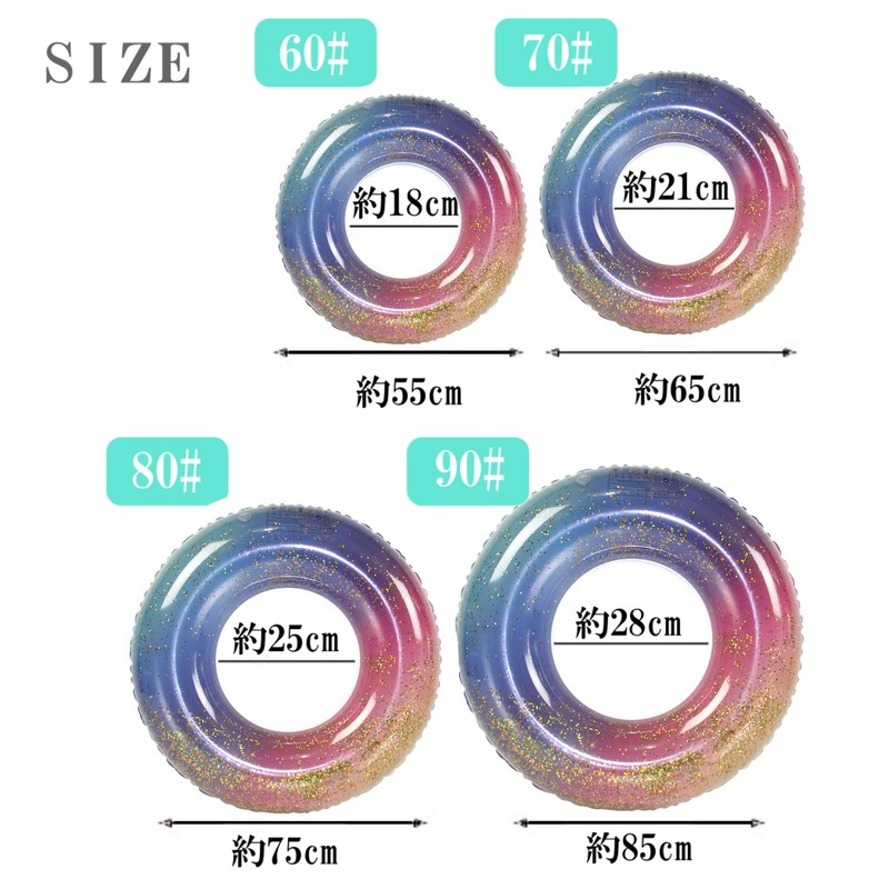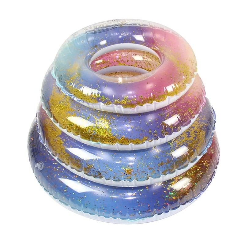 - Sparkly cute O-ring float. The rainbow color is cute and makes you stand out