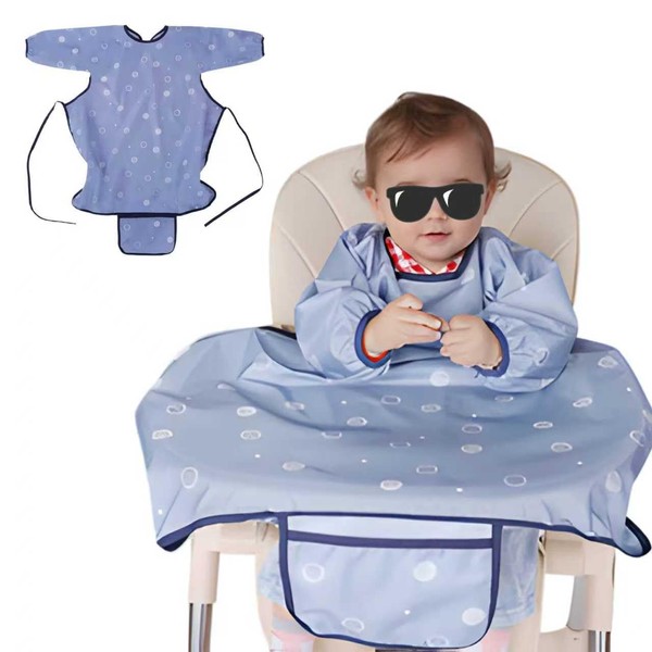 [happykau] お食事エプロン ベビー 離乳食 エプロン 汚れに強く防水性 耐油性 長袖 テーブルクロス 洗濯機可能 男の子 女の子 ピンク ブルー 1~3歳児向け