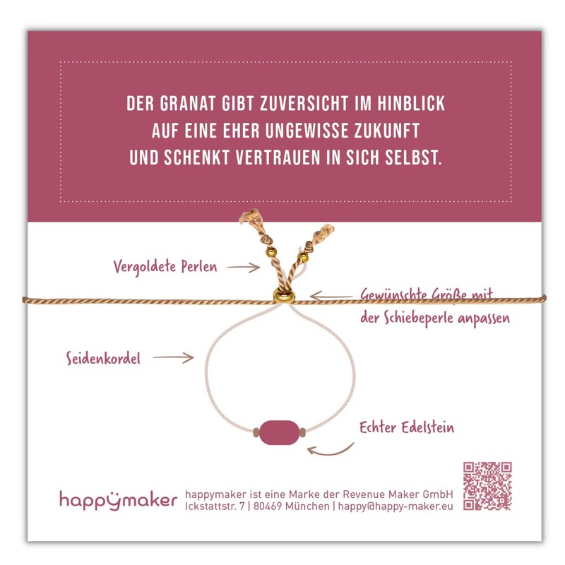 - 🎁 EDLE GESCHENKSCHACHTEL: Das Granat-Armband ist auf eine Karte mit Wirkungsweise aufgezogen und wird in einem plastikfreien Geschenkkuvert (ca. 11 x 11 cm) geliefert. Die Geschenkverpackung kann innen beschriftet werden.