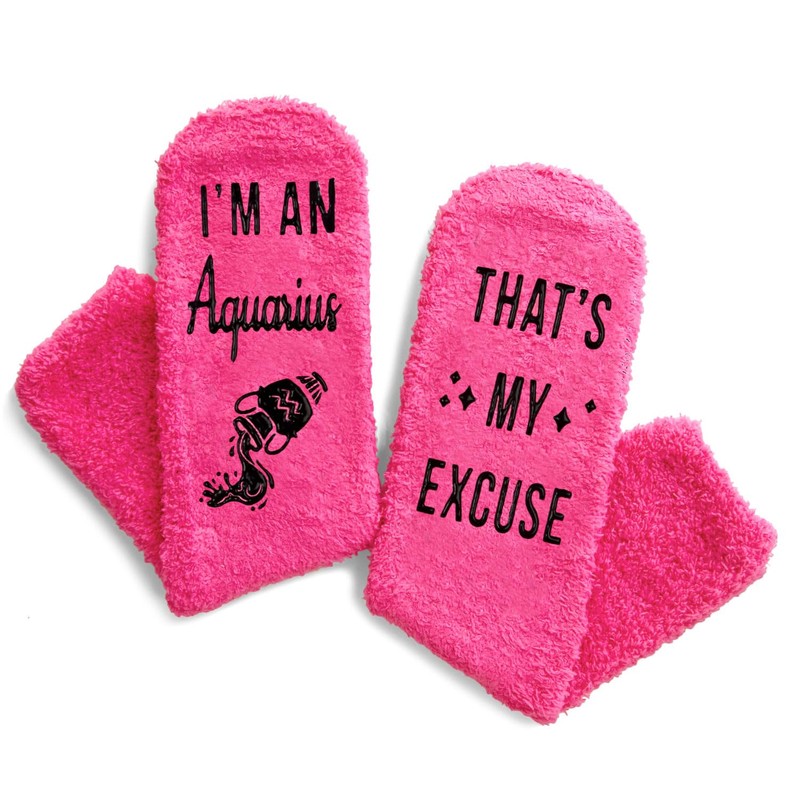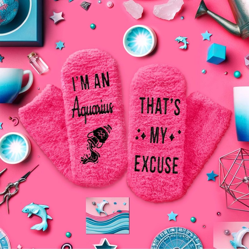 - AQUARIUS SOCKS: Say it with socks - "I'M AN Aquarius THAT’S MY EXCUSE". These space socks are soft and moisture-wicking, providing excellent comfort as they wrap around your feet.