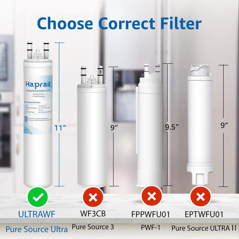 Haprait Haprait HP005 Replacement for Frigidaire ULTRAWF, Pure Source Ultra, Kenmore 9999, 469999, 46-9999, A0094E28261 Water and Ice, Height 11 inches, 3 Count