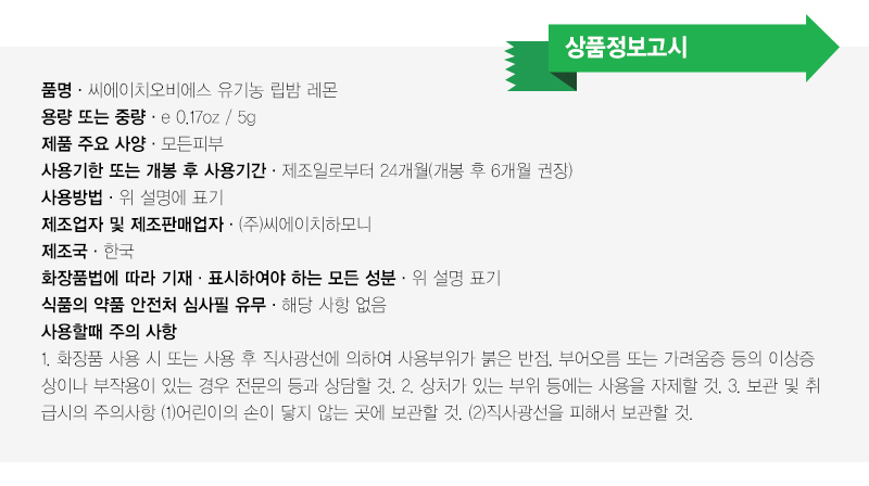 - 사용방법: 입술이 건조하다고 느낄 때 수시로 발라줍니다.