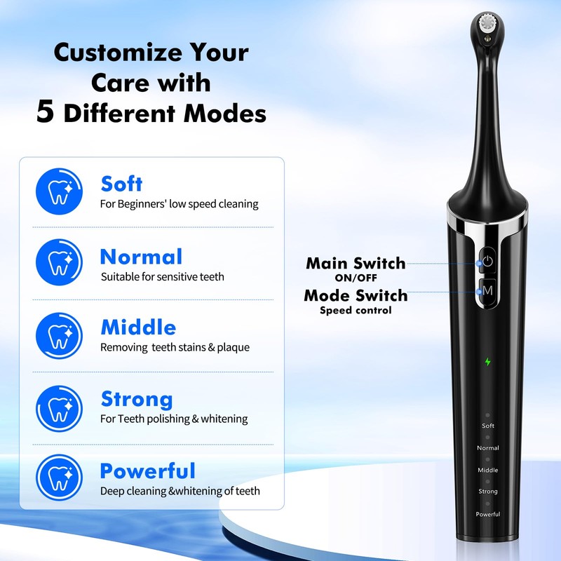 - ADJUSTABLE SETTINGS: 5 intensity modes from Soft to Powerful allow customised cleaning based on sensitivity and needs
