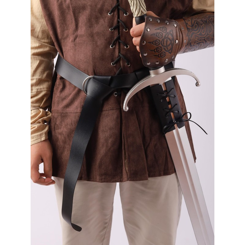HAQUIL Medieval, Viking Faux Leather O-ring Belt and Sword Frog, Renaissance Black Belt and Sword Holder, Hoslter for LARP Cosplay & Costumes, Black, Free size