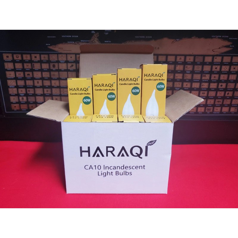 Designed with a Bulb Shape Code of CA10 and a Bulb Shape of Flame Tip, these light bulbs are easy to install and use. With a wattage of 60W, they are energy-efficient and long-lasting. Enjoy free shipping and bring the perfect glow to your home with these Haraqi light bulbs.