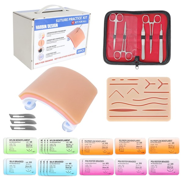 Harbin Design High Quality Practicing Leader, DIY Silicone Suture Practice Pad, Durable with Non-Slip Suction Cup Design, Including Thickened Pre-Cut Wounds and Complete Tools Educational Use Only