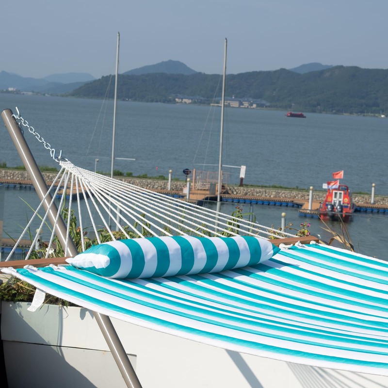 - Quilted Fabric: The double-layered quilted polyester with inner polyester padding and a polyethylene stuffing head pillow give you superior comfort; The thickness of the end cords contribute to the balance and strength of the hammock