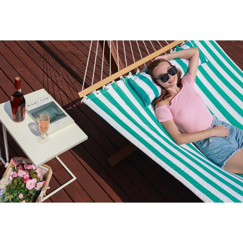 HARBOURSIDE 12FT Quilted Hammock with Spreader Bar, 2 Person Double Hammock with Pillow and Chains, Hammock for Indoor Outdoor, Bedroom Patio, 450 lbs Capacity,Cyan Stripe