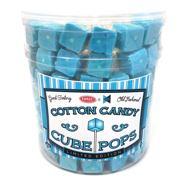 Hard Candy Cube Lollipop Suckers: Individually Wrapped Flavored Sucker Pack by Espeez - Old Fashioned Square Party Pops in Bulk - Cotton Candy, 100 Count