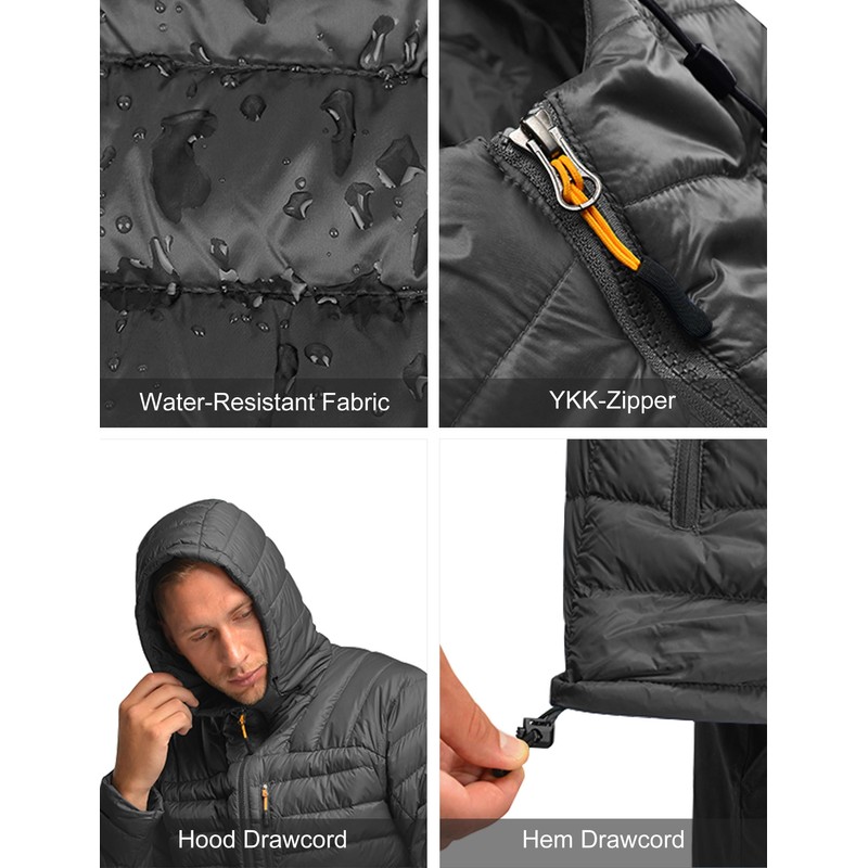 - LIGHTWEIGHT: Ultra lightweight(13~17oz.), can fit into a backpack easily, makes the men's down jacket perfect for outdoor activities like backpacking, hiking, jogging, camping, traveling, riding, and extended trips.