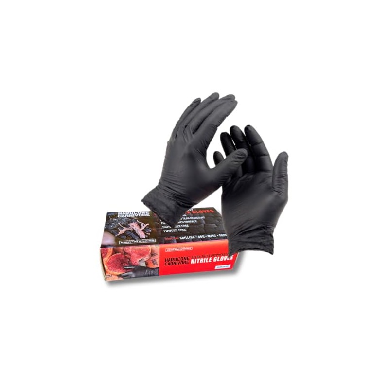 Hardcore Carnivore Extra Thick Disposable Nitrile Gloves – 50ct, 5 MIL, Full Textured, Food Safe, Latex-Free, Powder-Free, Black, One Size Fits Most, Tear Resistant