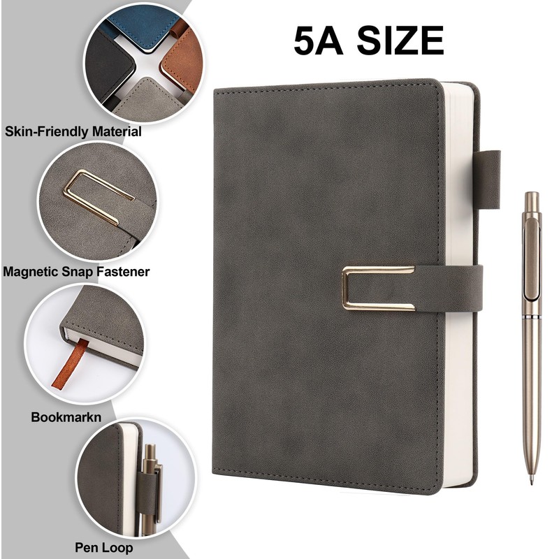 Hardcover Lined Notebook Journal for Women & Men,256 Pages 5.7 x 8.3 inches,A5 Ruled Notebooks Magnetic Closure Leather Journal,Daily for Work,Meeting,Travel,Writing,School and Note Taking (Gray)