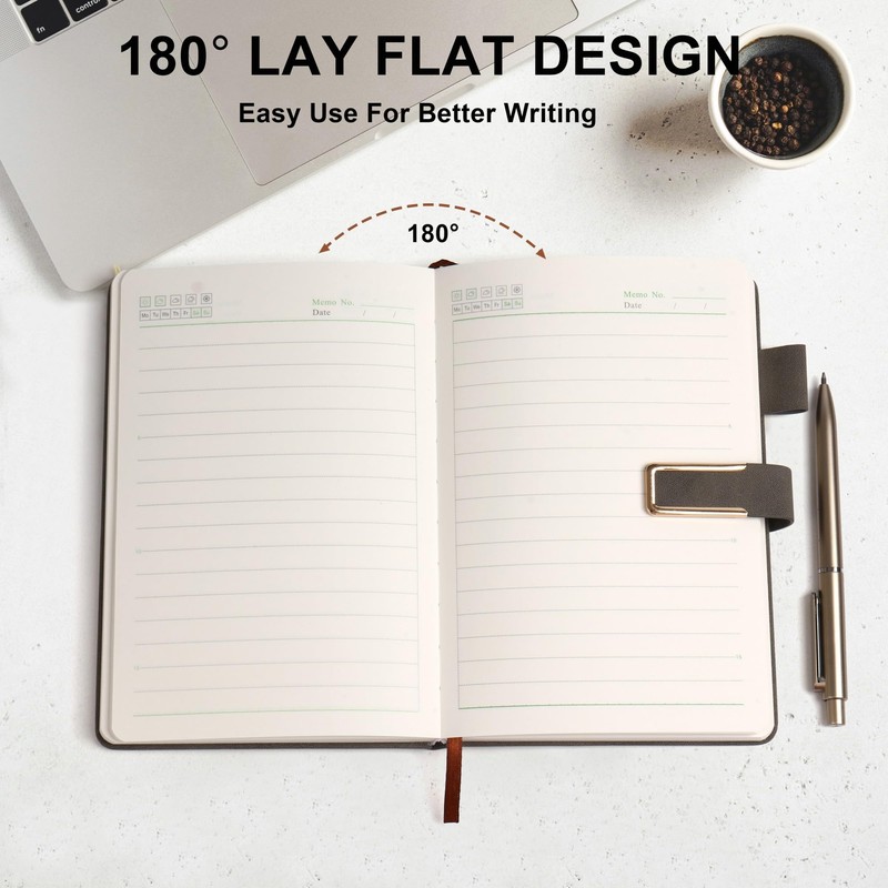- 【180°lay flat notebook】: This note book is designed to lay flat for easy writing between pages, convenient for both left-handed and right-handed users. Built-in ribbon bookmark for quick page turns