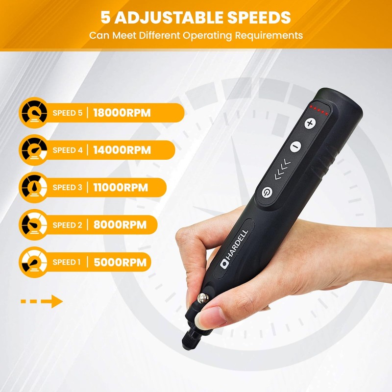 - 【Versatile Use】 -This HARDELL rotary tool, equipped with a variety of high-quality bits and accessories, expertly handles grinding, polishing, intricate engraving, sanding, drilling, and other small DIY tasks on a variety of materials, including wood, plastic, and resin. No need for multiple tools! Easily tackle jewelry making, model making, home repairs, and art projects with convenience.
