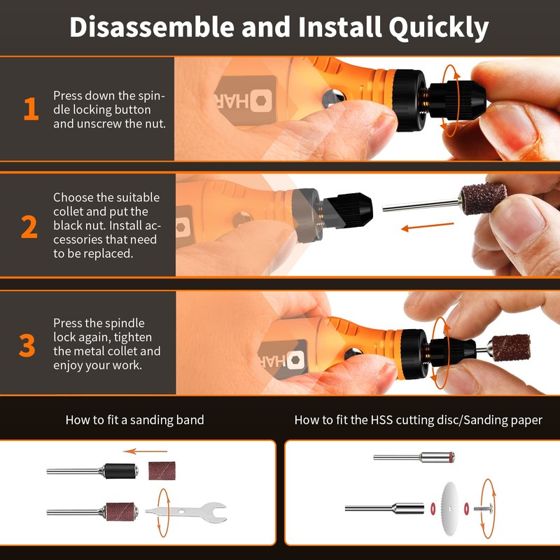 HARDELL MINI Rotary Tool is lightweight and small, you can carry it with you. It is suitable for different DIY working situation