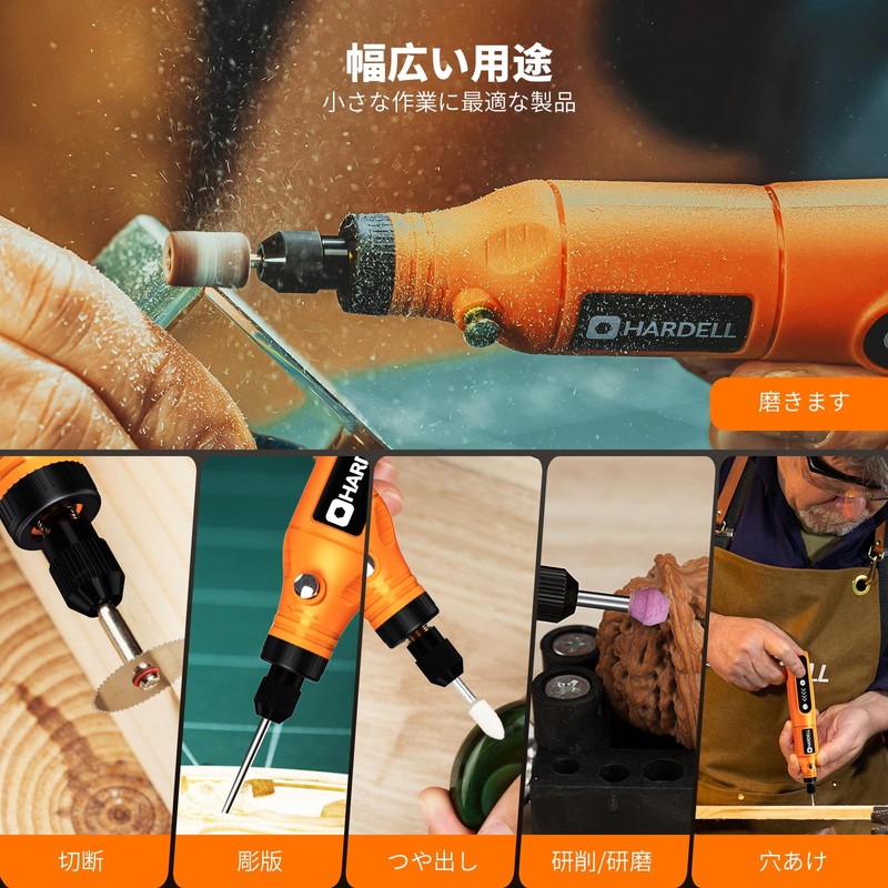 HARDELL Mini Router, 3.7 V, USB Wireless Router, Charging, 5 Speed Up to 18,000 RPM/Min, 61 pcs, Wireless Router Set, Engraving, Polishing, Cutting, Drilling, Dirt Removing, Nail Art, Japanese