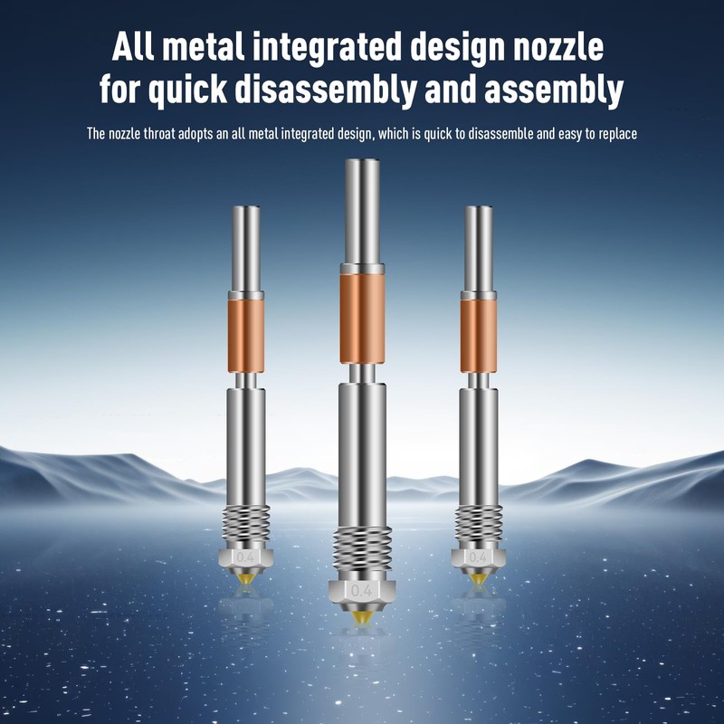 The gold-plated tip isn't just for visual distinction; it serves as a thermal indicator while featuring exceptional heat deflection properties. Paired with the titanium alloy heat break, this innovative design maintains optimal thermal gradients between hot and cold zones, effectively preventing jams during extended printing sessions with technical materials like nylon composites or glass-filled filaments.