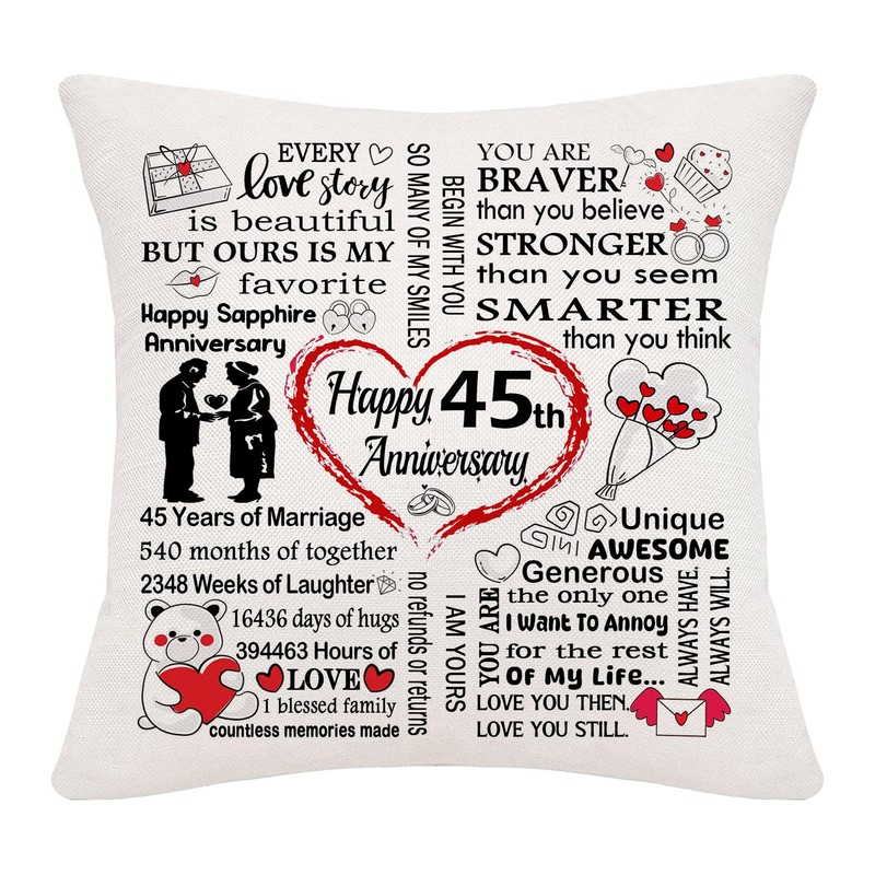 - 💓 45th Wedding Anniversary Gift: The perfect throw pillow cover gift for your wife, husband, couple, son and daughter-in-law, daughter and son-in-law or friends celebrating 45th Sapphire wedding anniversary. Show her or him how much you love her or him with this inspirational cushion cover and make your forty-fifth year wedding anniversary even more memorable!