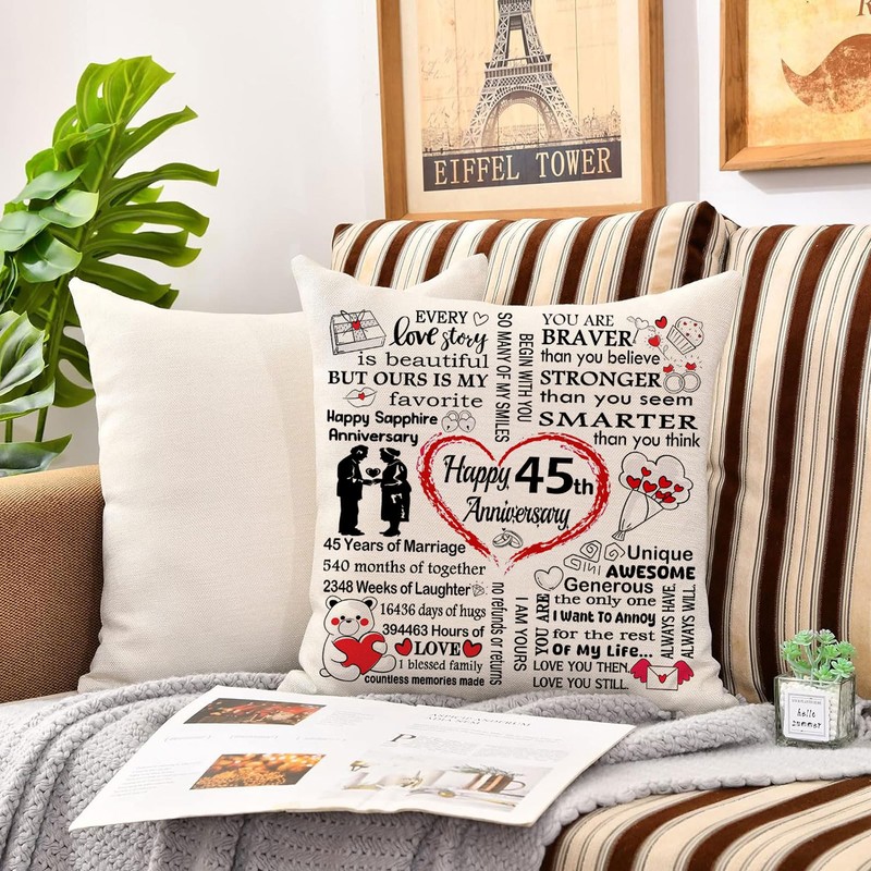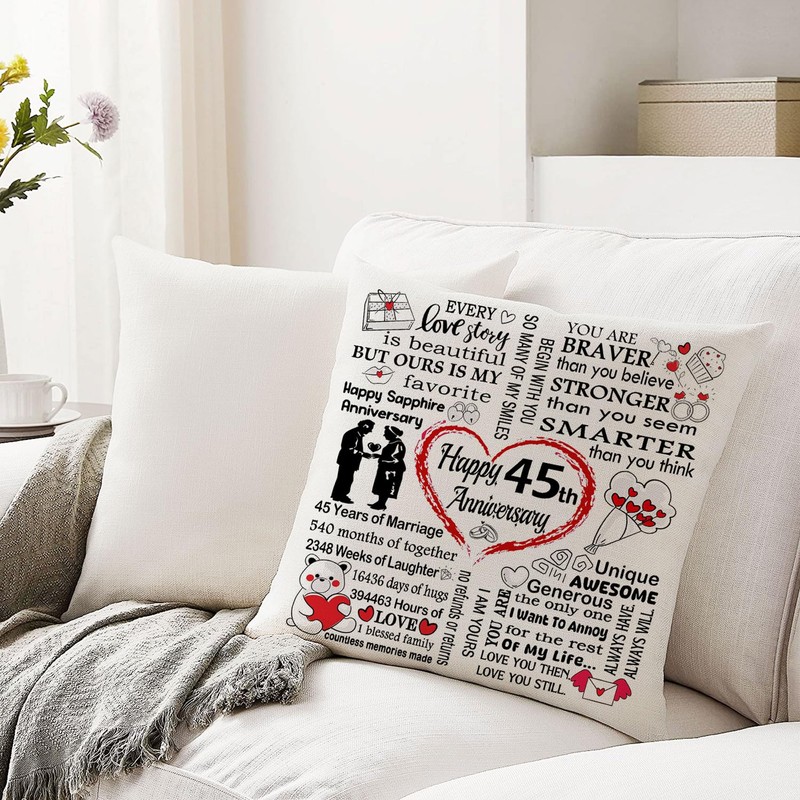 ✨ The 45th Wedding Anniversary Cushion Cover is a gift that will make who received gifts feel like you are by their side.
