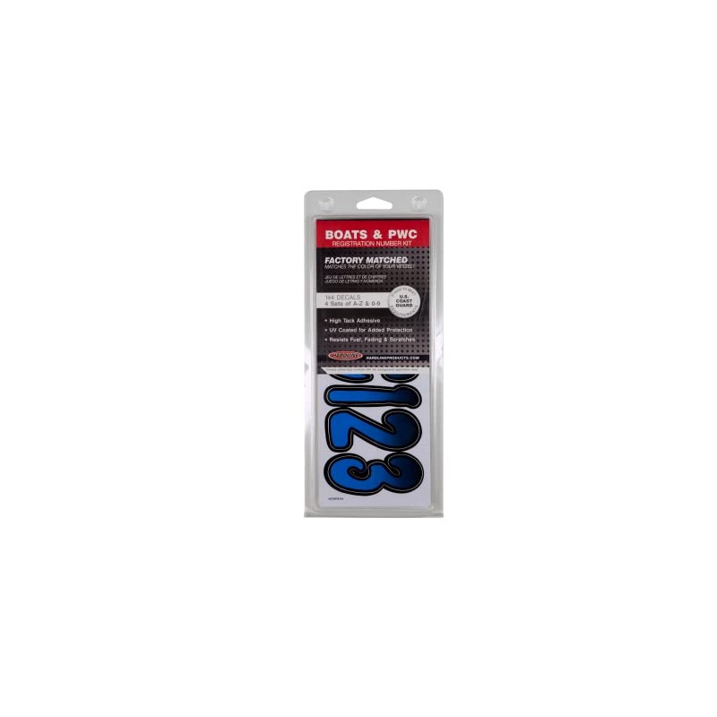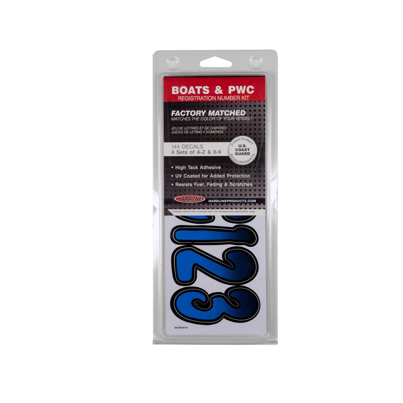 Hardline Products Hardline Products Series 200 Factory Matched 3-Inch Boat & PWC Registration Number Kit, Blue/Black - BLBKG200