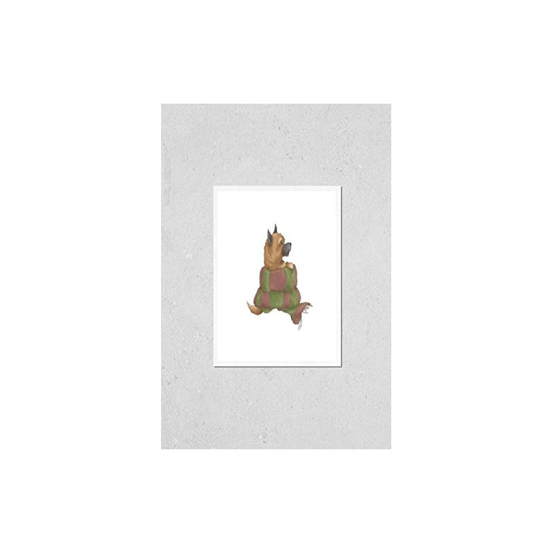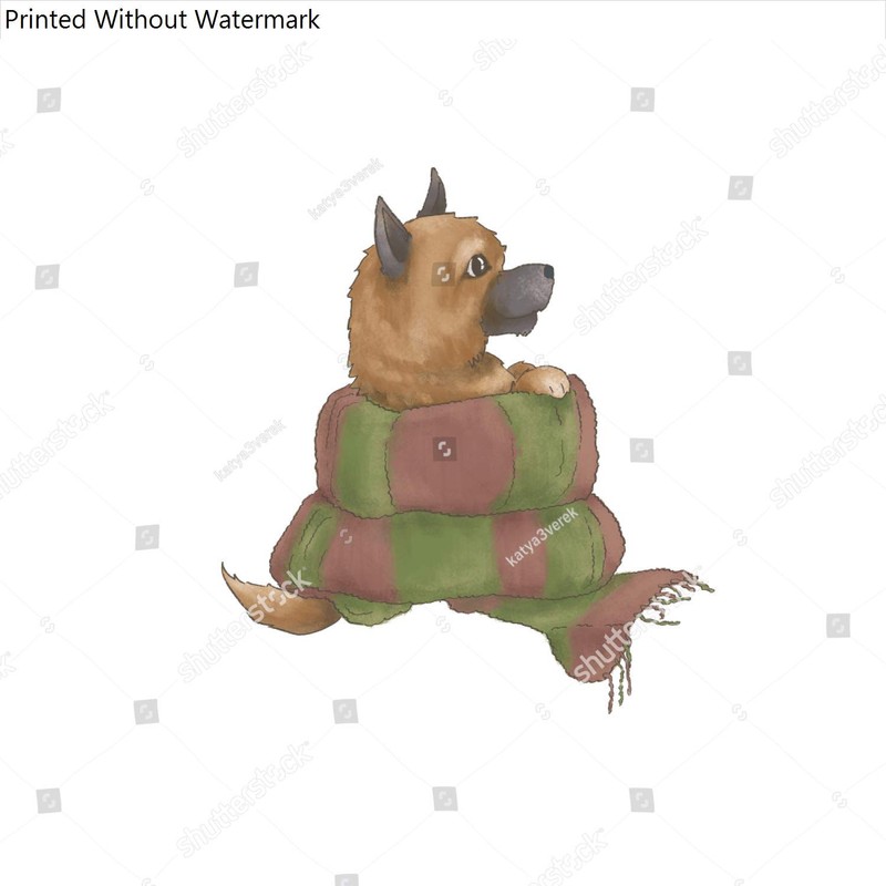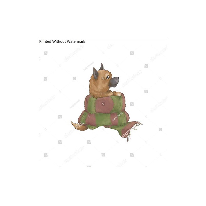 HardPress Wall Art Poster Print of A Small Red Dog of The Spitz Breed Sits Dressed in a Scarf. Illustration Isolated on White Background