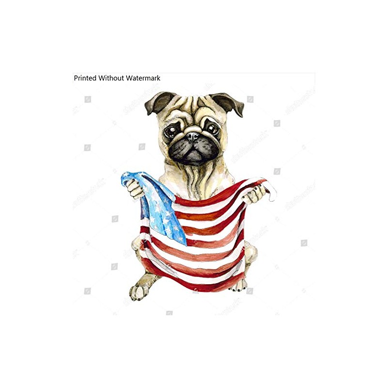 HardPress Wall Art Poster Print of Dog Breed Pug Holding a American Flag. Isolated on White Background. Politics.