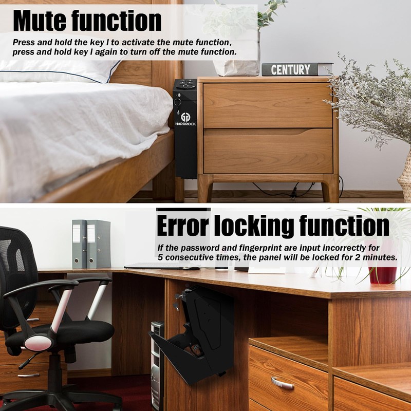 HARDROCK Gun Safe for Pistols, Biometric Wall Mounted Handgun Safe box for Desk, Bedside,Truck,Drop Down Quick Access Security Safe with Fingerprint Keypad Lock for Home nightstand
