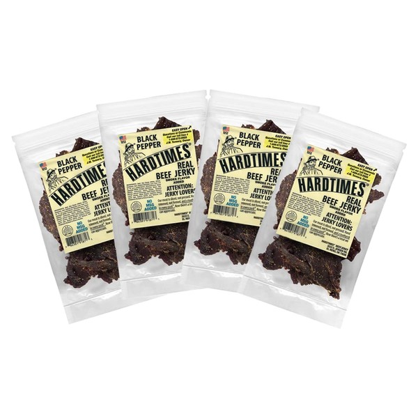 - TASTY BLACK PEPPER: Sprinkled with delicious cracked black pepper, Hardtimes Black Pepper Beef Jerky has just enough spice that you'll be craving more after the bag is empty.