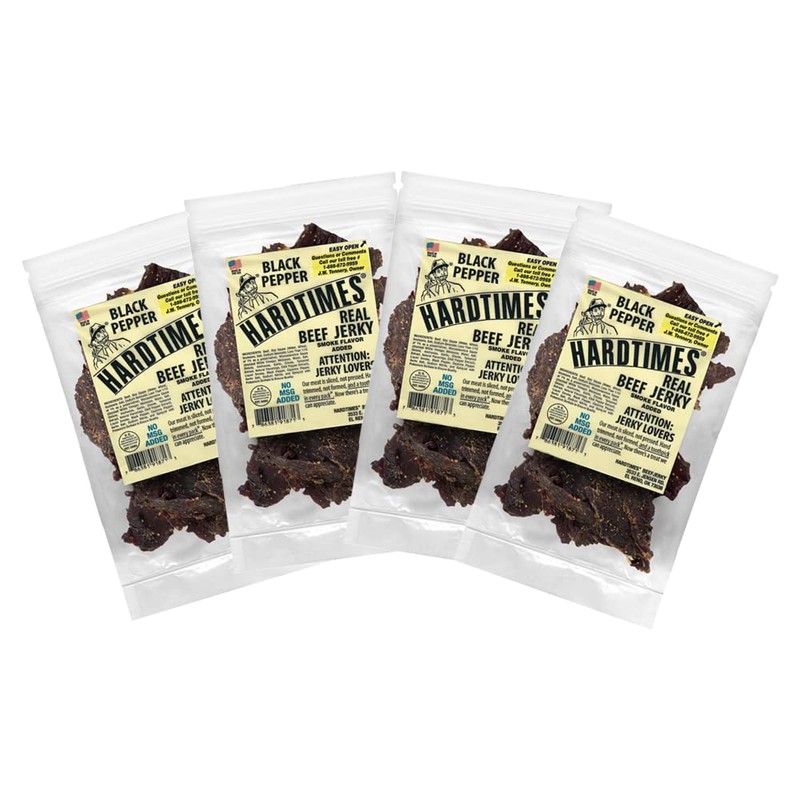 Hardtimes Handcrafted Beef Jerky - Black Pepper Flavor - 4 Pack of 4 oz. Bags