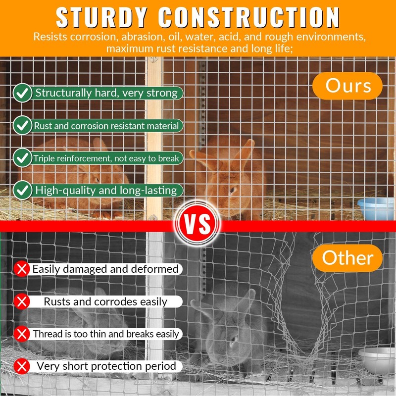 - 【Safety Sturdiness】heavy duty 19 gauge galvanized steel wire,Sturdy construction,Wider weave not too stiff, Galvanizing after welding to ensure that all welding points are galvanized for maximum rust resistance,abrasion, oil, water, acid, and rough environments.
