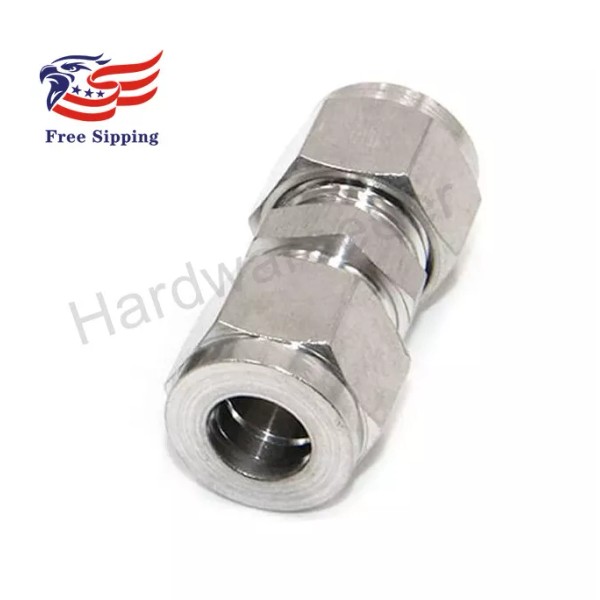Hardwareeeer 304SS Compression Tube Fitting Union with Double Ferrules 3/8" OD x 3/8" OD 1PC