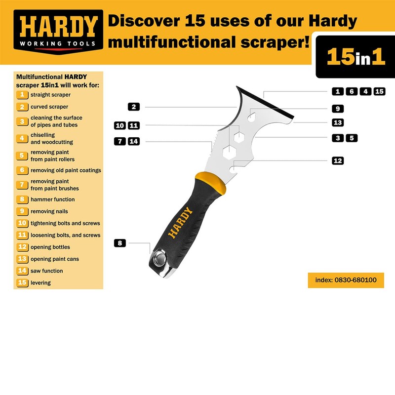 HARDY Multi-float 15-in-1 Universal Solution Multiple Tools in One Spatula Bottle Opener Nail Pulling Cleaning Stainless Steel Brushes