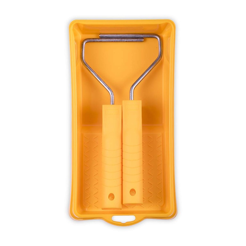 HARDY WORKING TOOLS A0180-118000 Painter's Set, Paint Roller, Paint Tray, Protective Film and Foam Paint Rollers, Pile Height 7 mm, Length 11 cm, Diameter 35 mm, Yellow/White/Grey