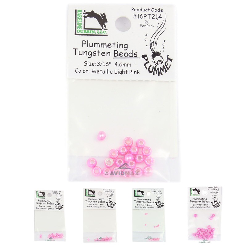 Hareline Plummeting Tungsten Beads 1/16" Metallic Light Pink