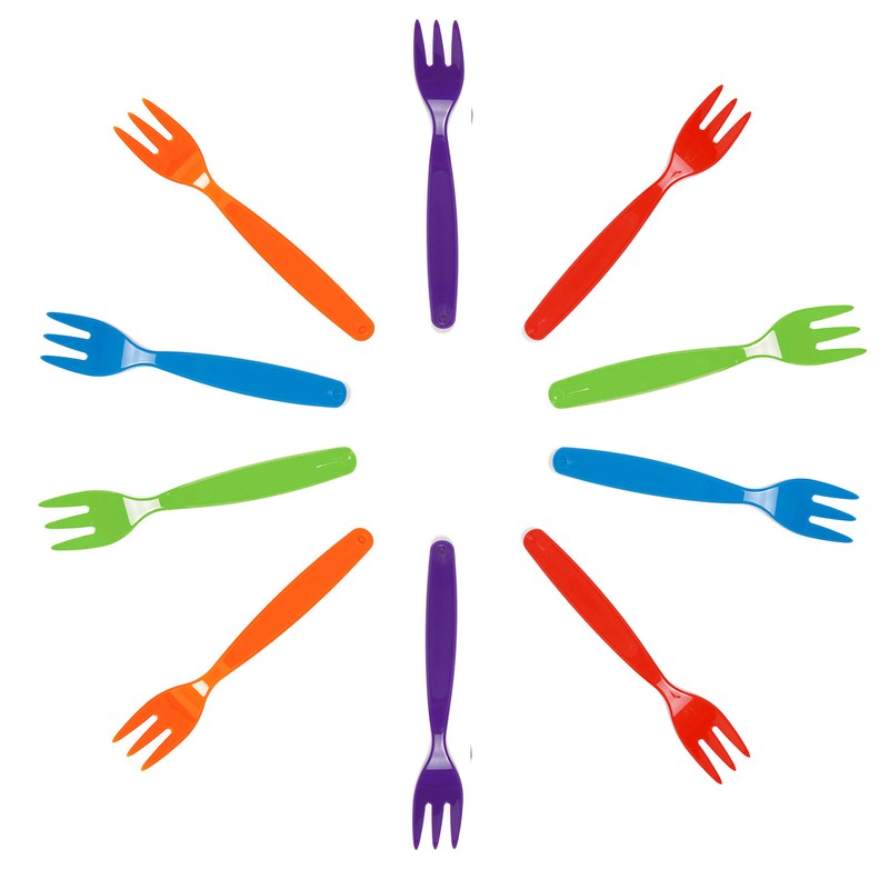 Harfield Pack of 10 Multicoloured Small Children's Forks Virtually Unbreakable Reusable Polycarbonate Plastic