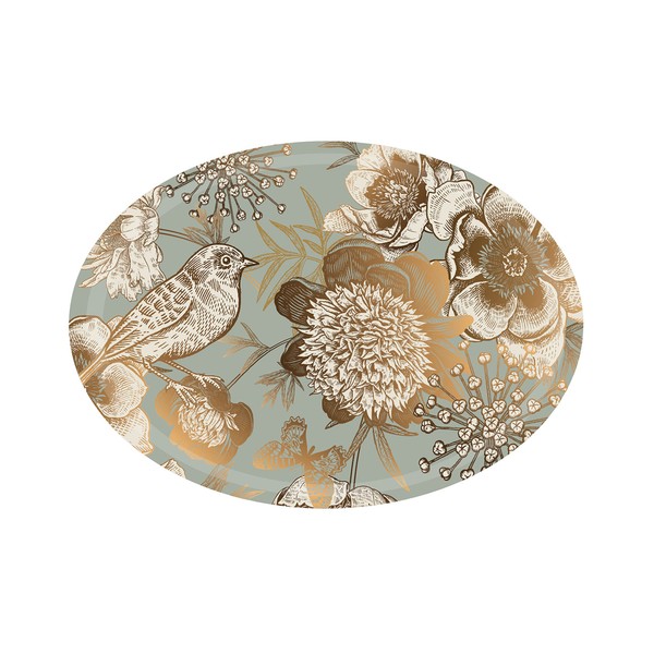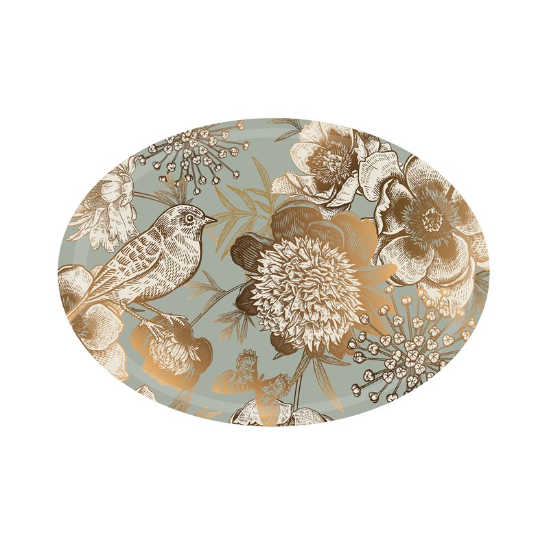 - Small 28x20cm (11x7.9 inches) tray with gold flower and bird print