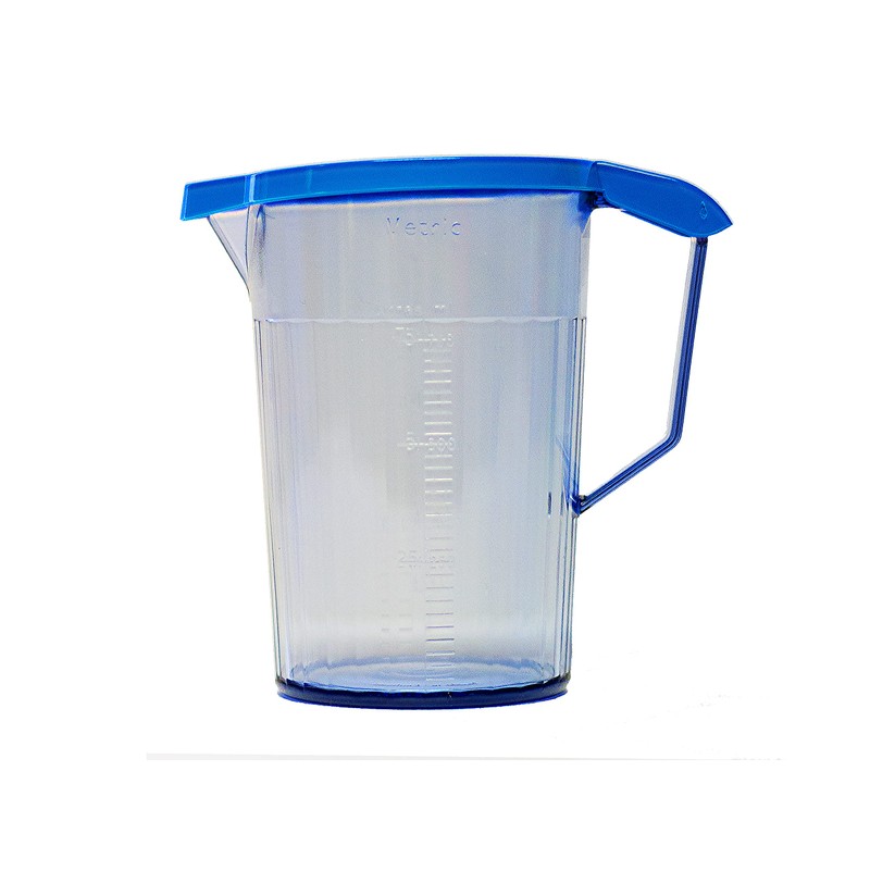 - Antibacterial, virtually unbreakable clear graduated jug with lid.