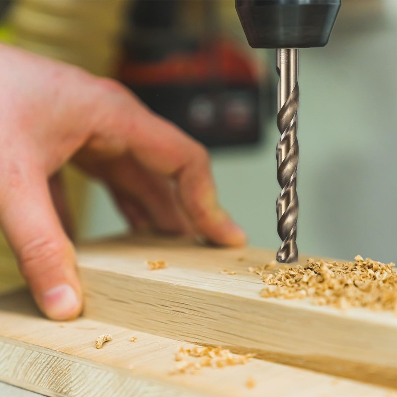 1/4" hex shank fits all standard power tools and impact drivers and installs quickly and easily into quick-change chucks; the 135° split point design ensures accurate start and automatic centering, reducing thrust for increased drilling speed and accuracy.