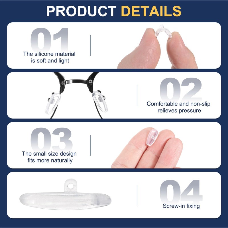 - Feature - The screw-in design ensures a firm connection between the nose pads and the glasses, which can effectively prevent slipping. These small silicone nose pads take up little space in the glass frame, providing a comfortable and natural fit while ensuring that the glasses are firmly fixed in place.