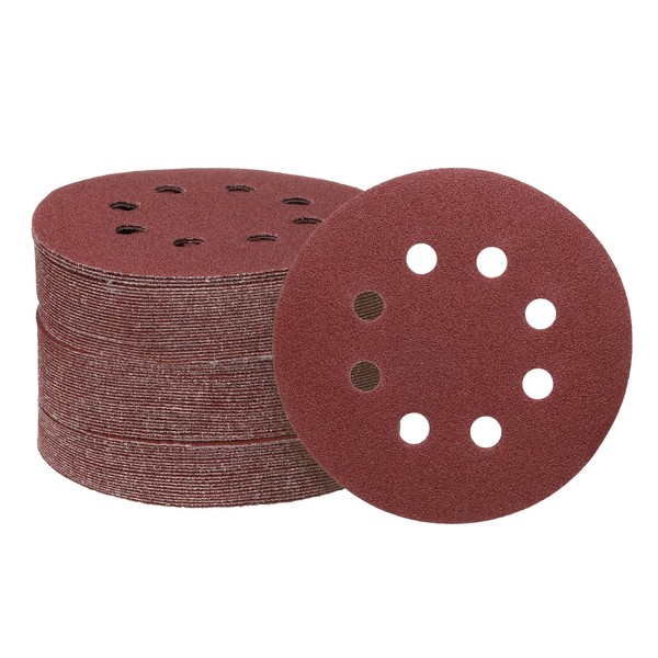 - Size - Package contents include 100pcs 100 grits 5" hook and loop sandpaper discs. Each sanding disc has 8 holes, perfect for dust-free sanding in dry conditions.