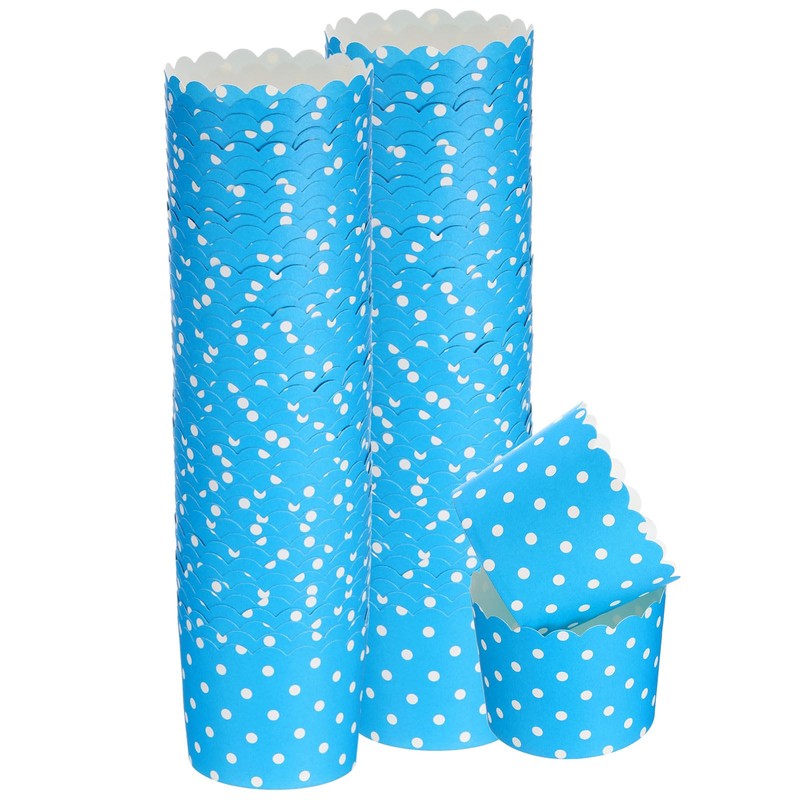 HARFINGTON 100Pcs Paper Baking Cups 6oz Greaseproof Disposable Bulk Cupcake Muffins Liners Cases Wrappers for Wedding Birthday Graduation, Dot Blue