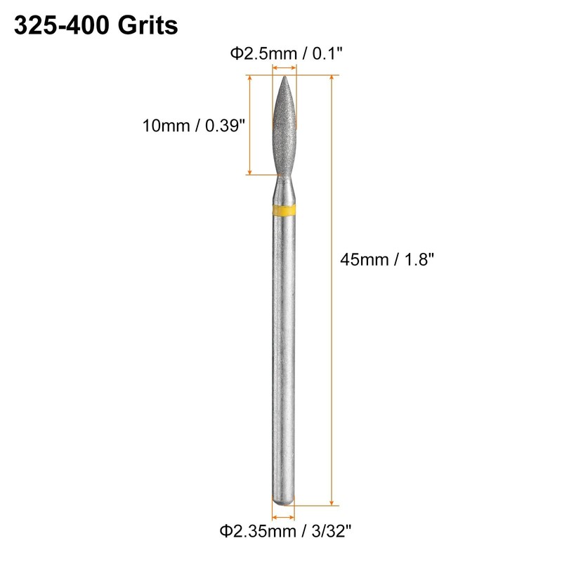HARFINGTON 10pcs 325-400 Grits Diamond Grinding Bit 2.5mm Oval Head 2.35mm Shank 10mm Length Stone Sanding Drill Bits Rotary Tool for Ceramic Glass Nails Grinding Polishing