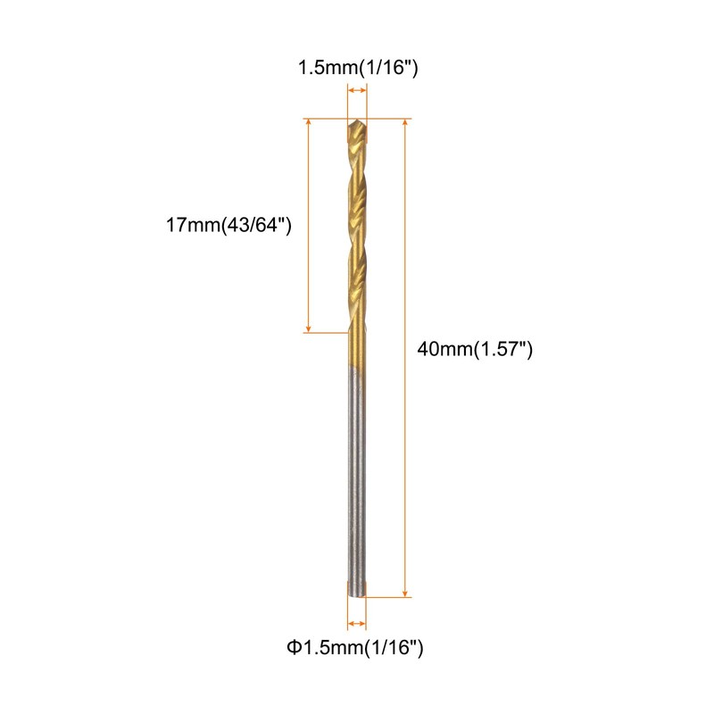 - Size - The brad point drill bit has a diameter of 1.5mm(1/16") and a straight shank diameter of 1.5mm(1/16"), an overall length of 40mm(1.57"). The maximum cutting depth can be up to 17mm(43/64").