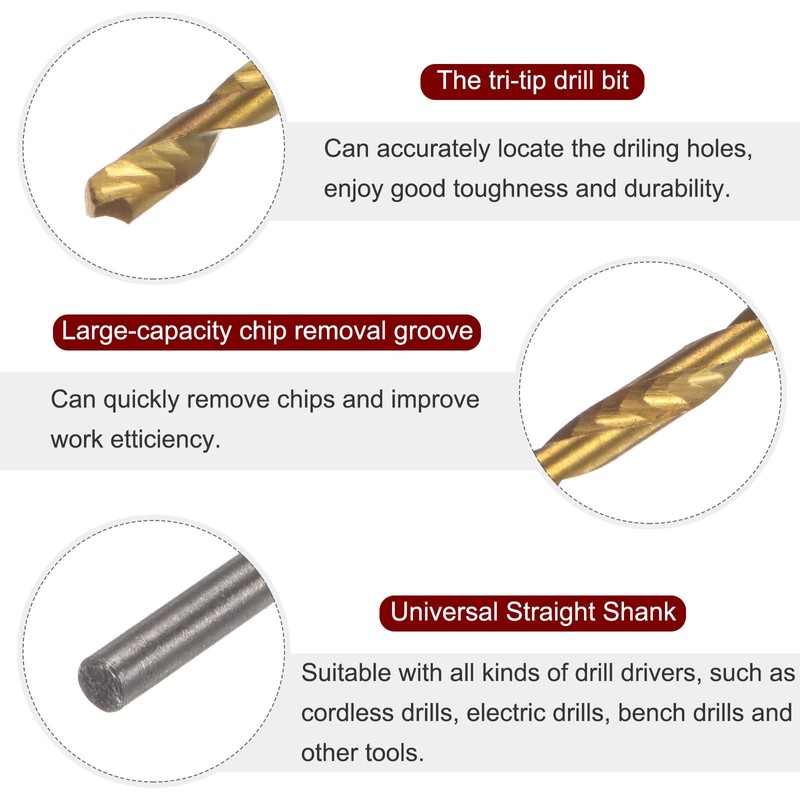 A wide range of applications and compatibility. The drill bits are suitable for all kinds of drill drivers, such as cordless drills, electric drills, bench drills, and other tools.